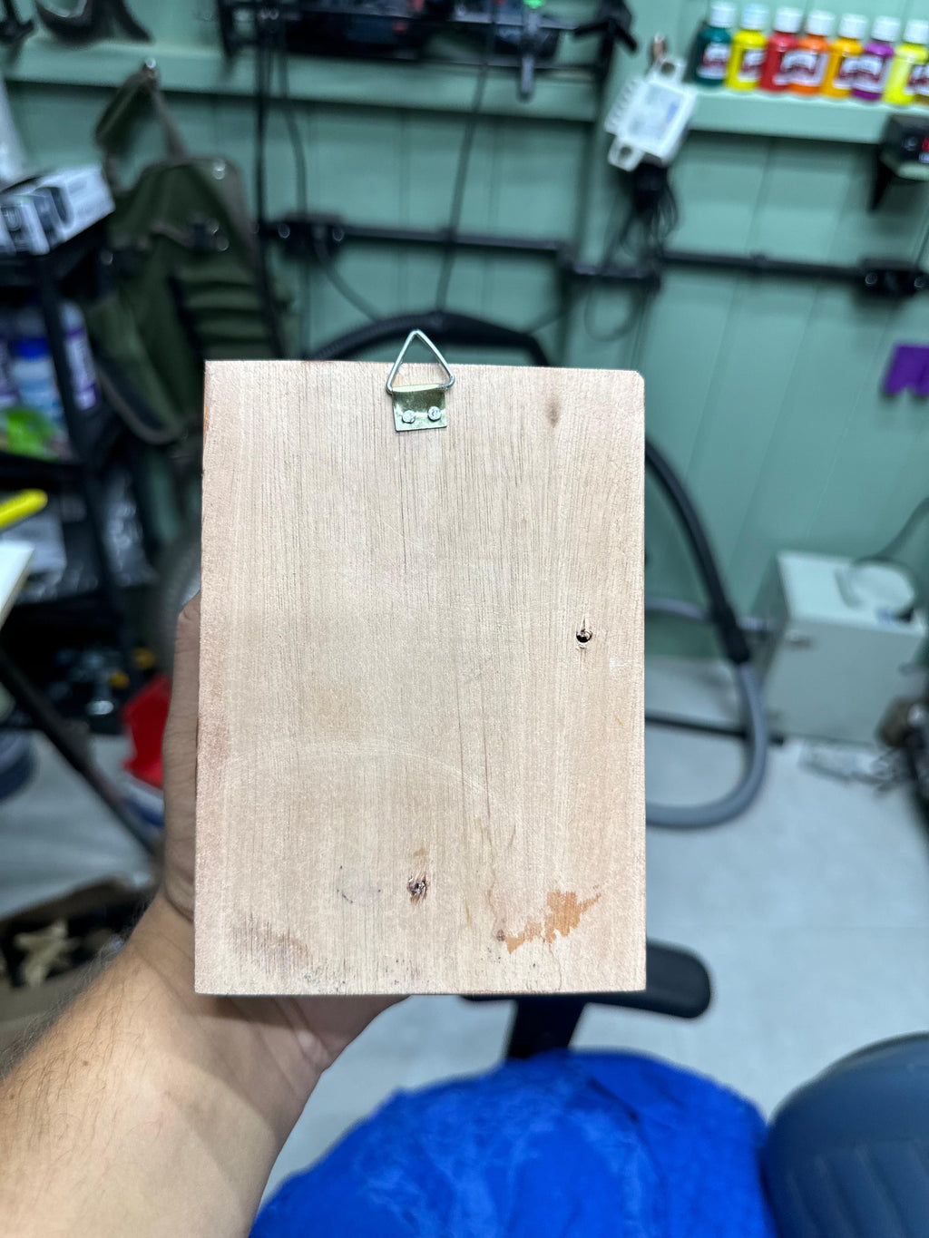 A figura central recebe um acabamento em ouro metalizado, que proporciona um brilho nobre e constante. O grande diferencial desta obra está em sua base estilizada, que funciona como um suporte de quadro em madeira, meticulosamente trabalhada com uma composição artística de tons em dourado, bronze e ouro. Para garantir a durabilidade e um aspecto de joia, a peça é finalizada com a aplicação manual de resina epóxi pincelada, resultando em uma camada vítrea que protege a pintura e confere uma profundidade visual impressionante.